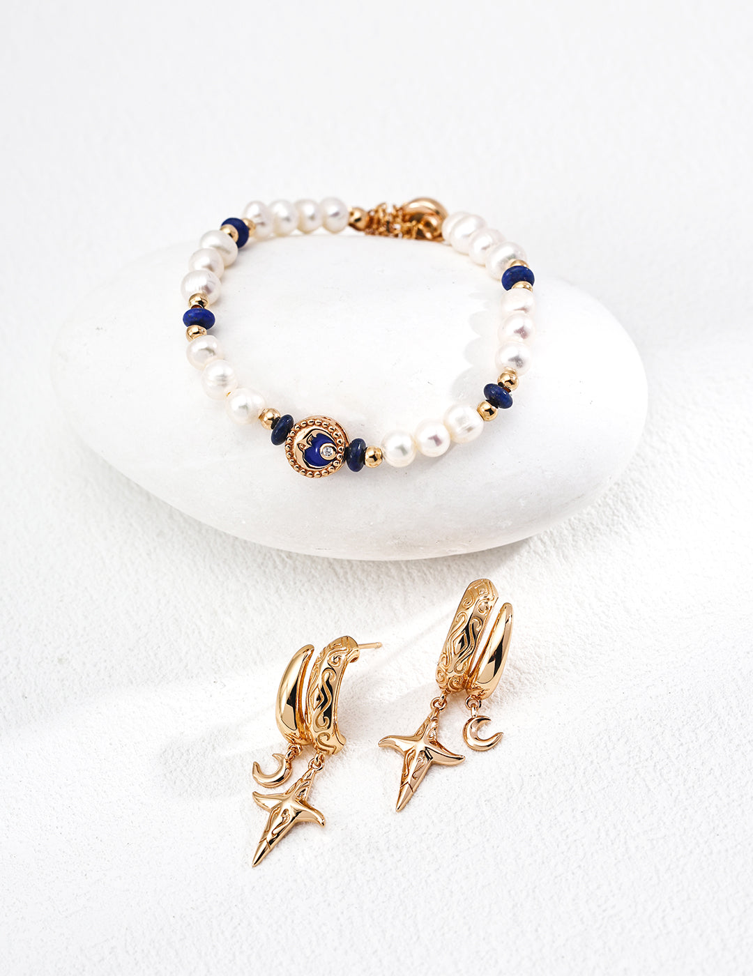 ✦ Lower tier: Detachable crescent (1.8cm) and four-point star (1cm) pendants