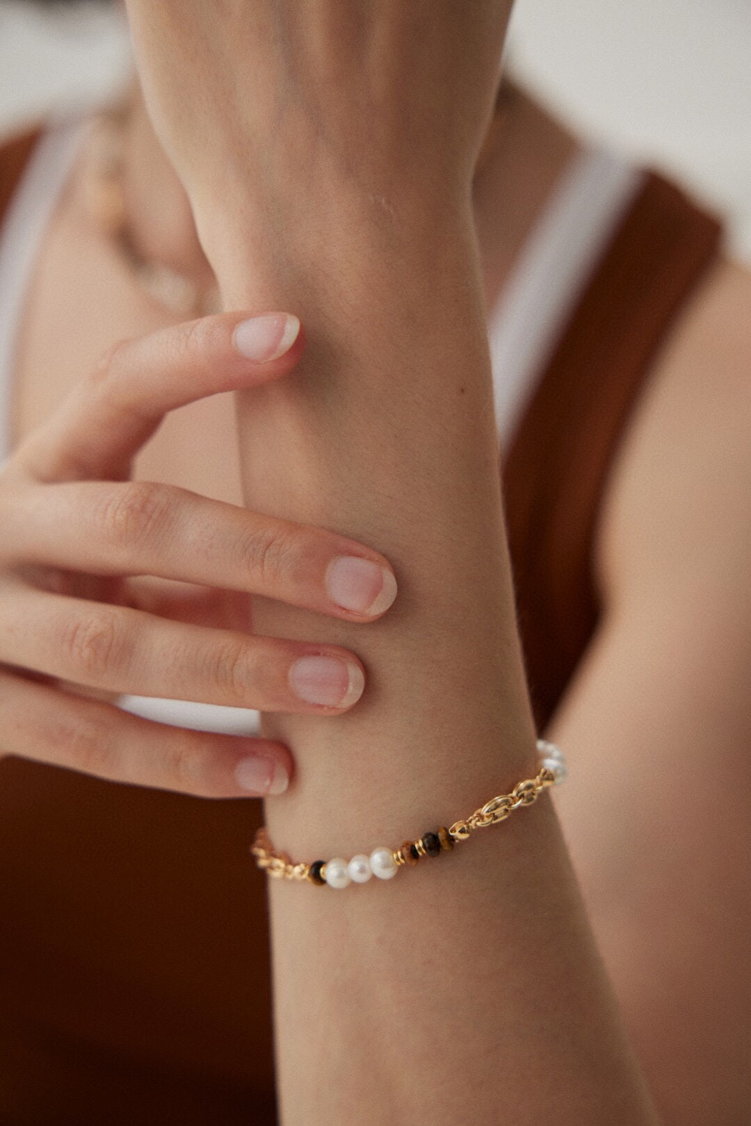 ✦ Components: Natural pearls (5-5.8mm) + tiger’s eye (4.5-5mm)