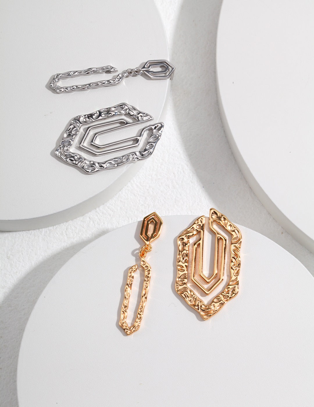 I réimse ina sáraíonn an geoiméadracht domhantarraingt, déanann na fáinní seo solas a dhíscaoileadh ina thoisí paradacsaí. Ancaireann an píosa níos mó - polagán 39mm le fraictail laibríneach - cruinneas, agus síneann a mhacasamhail 34mm amach mar lann shleamhain de spás diúltach. Plátáilte le hór bán agus seanré, athraíonn siad loighic ina healaín, atá deartha d'ailtirí féinléirithe a dhealbhaíonn tost ina ráiteas.