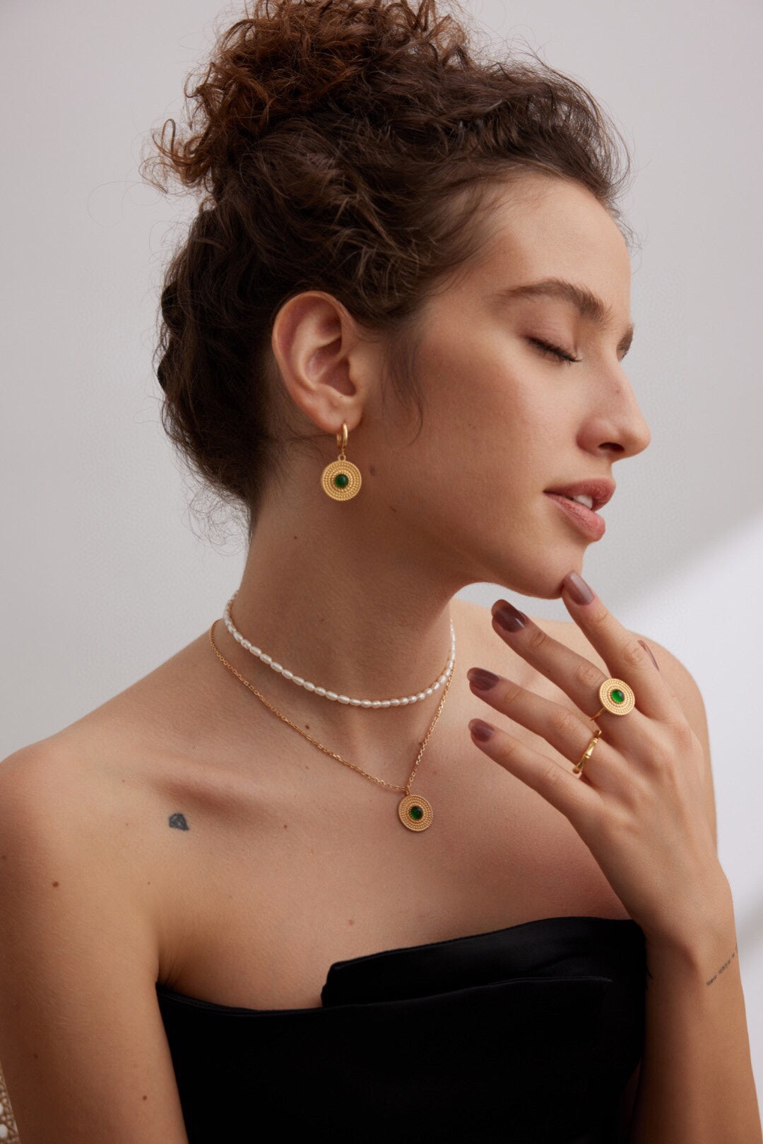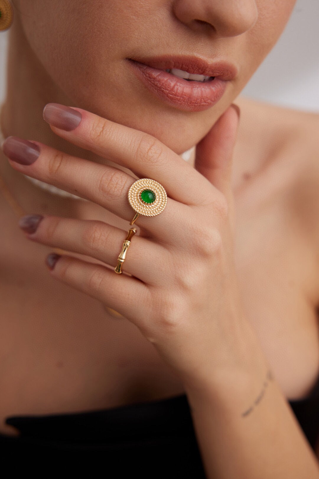 ✦ Mythic Contrast: Emerald chrysoprase pops against gilded rope detailing