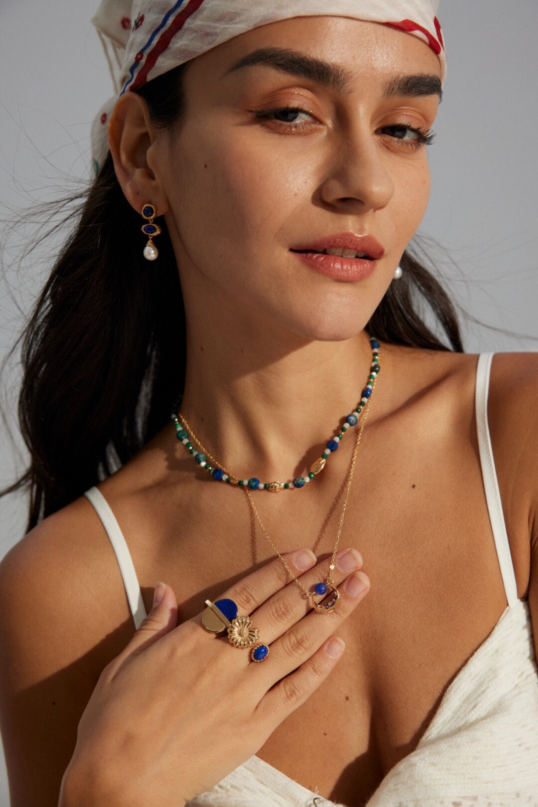 ✦ Genuine lapis lazuli cabochon (5mm precision-domed)