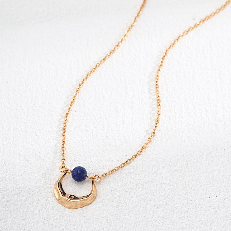 At the witching hour, the crescent pendant becomes an astral shield – its arc forged from twilight’s last gleam. The 5mm lapis lazuli embedded at the apex pulses with the intensity of a supernova compressed into volcanic glass, cradled by gold-plated curves that map the moon’s eternal dance. This 40cm chain transforms into a collarbone constellation, where Mesopotamian symbolism meets Art Nouveau fluidity for those who armor themselves in cosmic elegance.