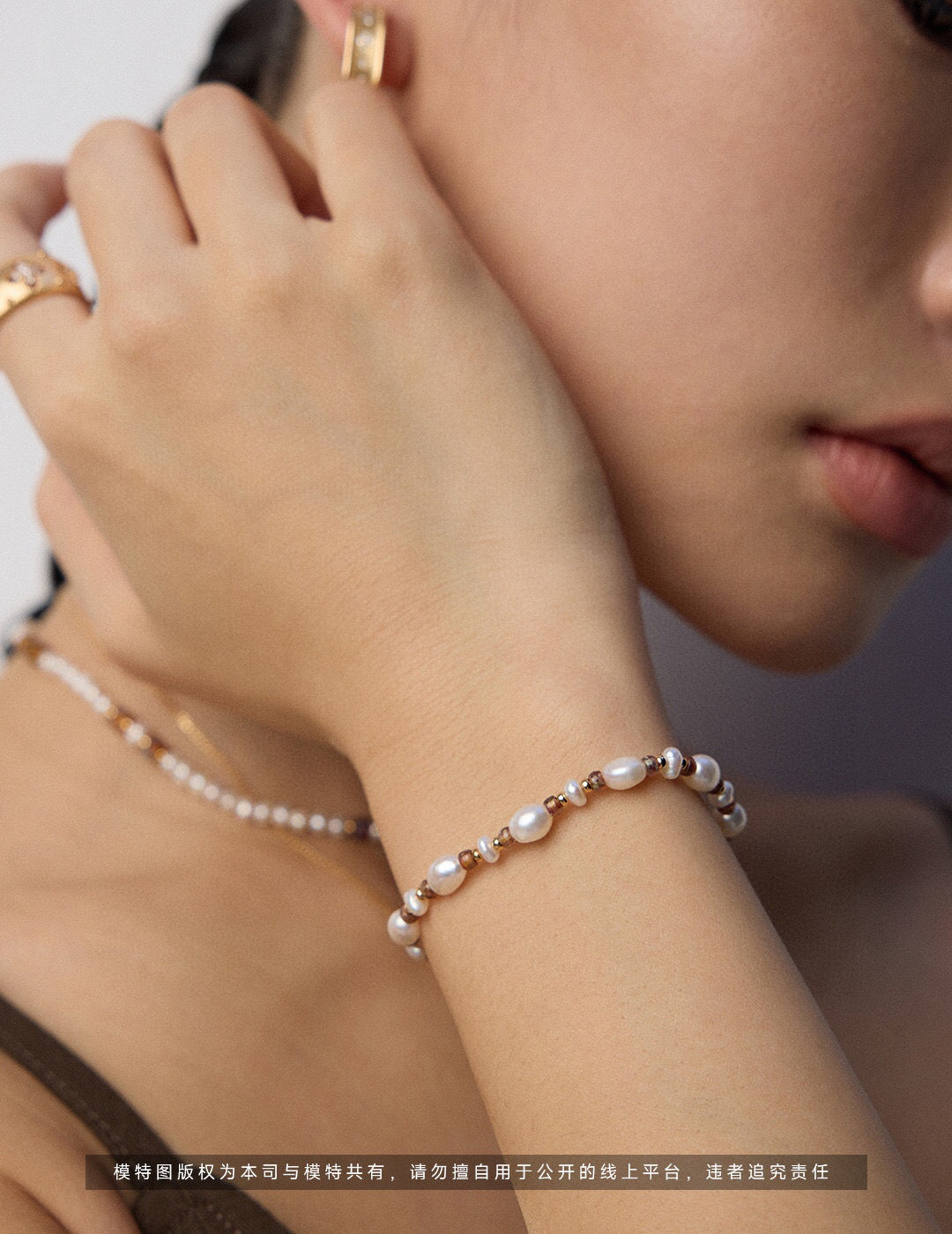 Under moonlit skies, organic potato pearls nestle beside celestial-hued glass beads, their irregular shapes echoing nature’s imperfect perfection. This bracelet weaves Renaissance-inspired gold links with earthy textures, embodying the quiet drama of a midnight garden where raw elegance meets artisanal refinement.