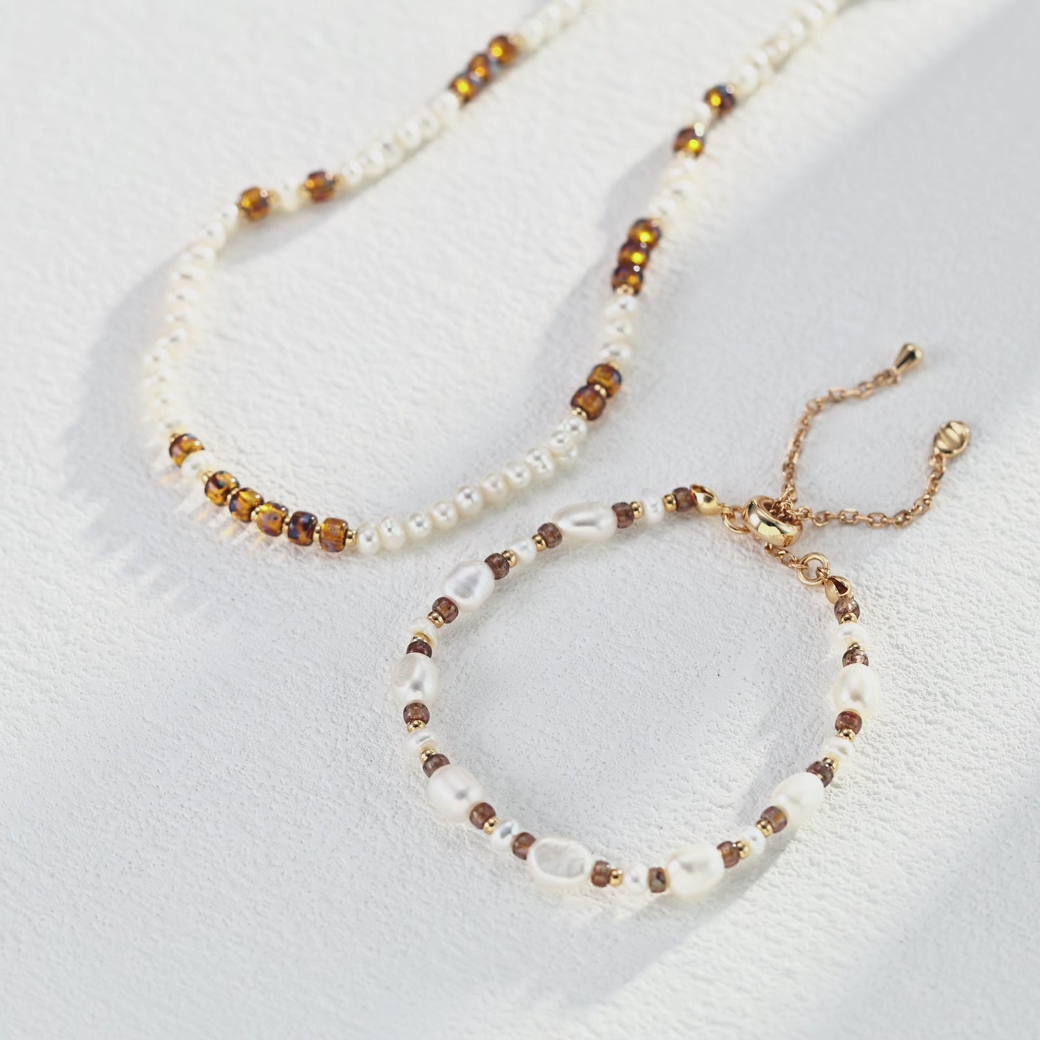 ✦ Organic Contrast: Raw pearl textures offset by smooth glass spheres.