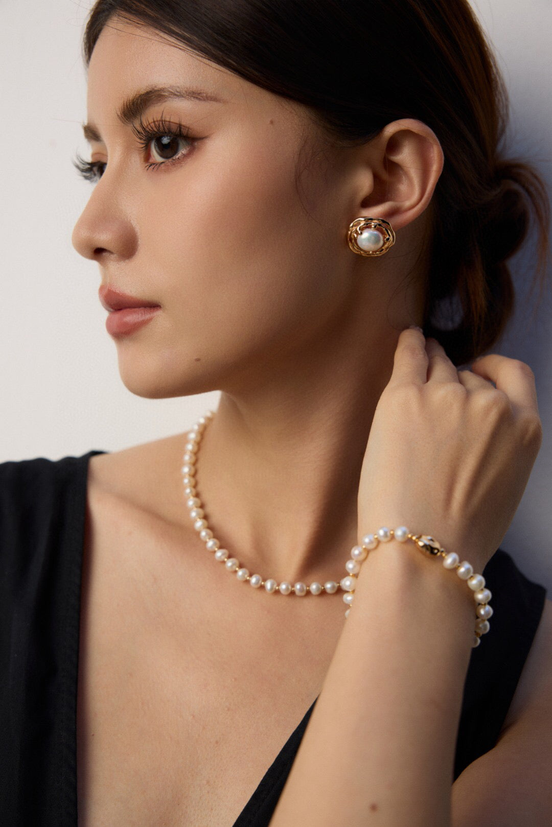 Dual plating creates liquid mercury effects along the chain during movement, while pearls project prismatic moonglows onto skin under candlelight.
