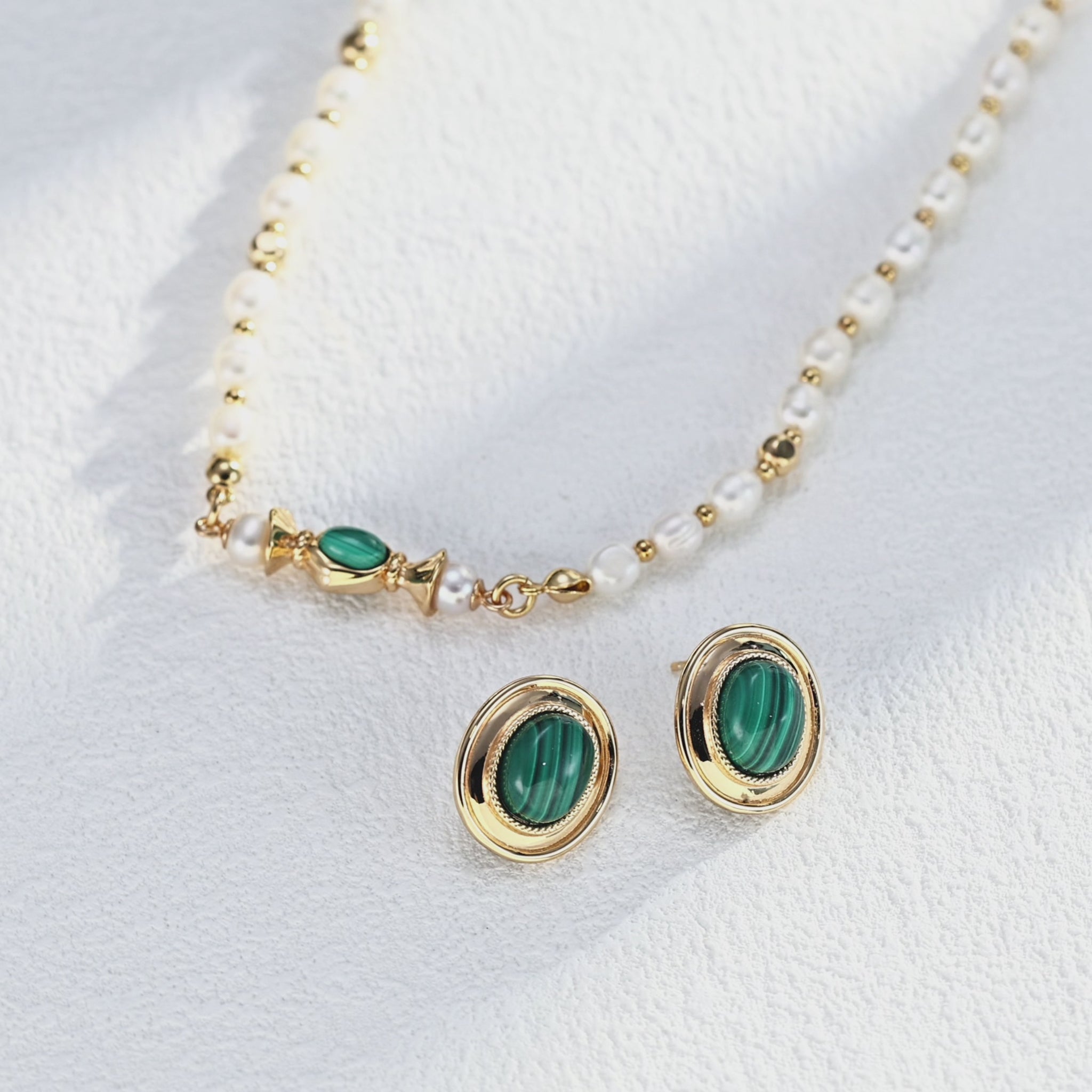 I dteampall dearmadta inar labhair órcheardaithe le líocha na talún tráth, criostalaíonn na stodaí seo cód an nádúir—cabochon malachite 10x8mm, a bhannaí casta ag macalla scrollaí paipíreas naofa, ar crochadh i bhfáinne óir 18K a rinneadh de láimh. Déanann na claiseanna ocsaídithe aithris ar mhiotalóireacht ársa a tochaileadh as silt, agus bíonn glasa hipníteacha na cloiche ag cuisleáil cosúil le veirdigris criptithe. Don ailceimiceoir nua-aimseartha atá ag lorg hieraglifí inchaite.